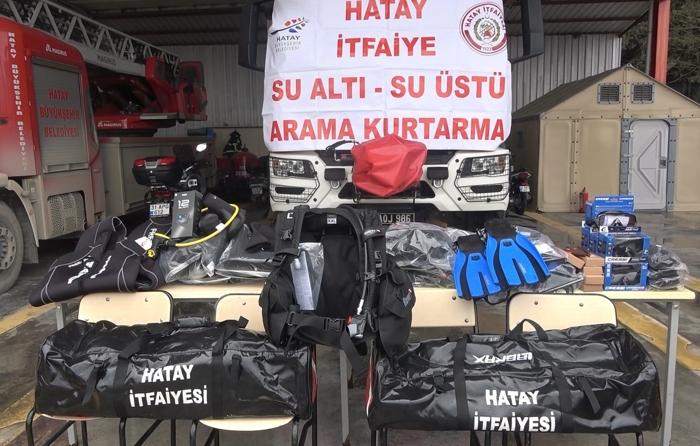 <meta name="description" content="Hatay'da deprem felaketinde yıkılan binasında zarar gören su altı ve su üstü arama ekiplerinin ekipmanı güçlendirildi." />