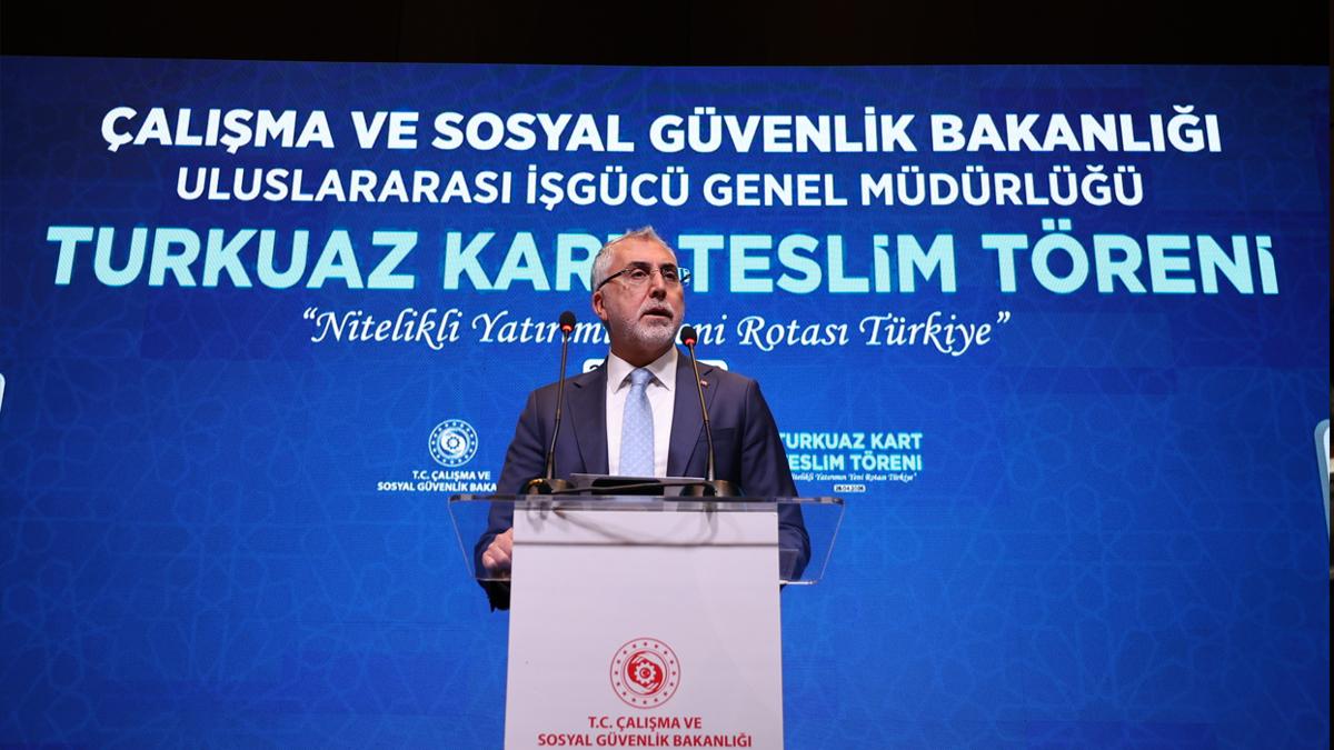 <meta name="description" content="Çalışma ve Sosyal Güvenlik Bakanı Vedat Işıkhan, Türkiye'ye değer katan 22 firmanın temsilcisine süresiz çalışma hakkı, vize muafiyeti ve ikamet kolaylığı sağlayan Turkuaz Kartlarını takdim ederek; Türkiye'nin nitelikli insan gücü ve küresel yatırım için güvenli bir liman olduğunu vurguladı." />