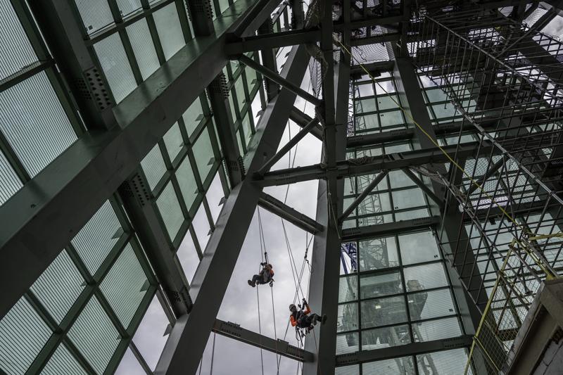 İstanbul Finans Merkezi'nde yer alan ve Avrupa'nın en yüksek binası olma özelliğini taşıyan, 353 metre uzunluğundaki 72 katlı Türkiye Cumhuriyet Merkez Bankasının (TCMB) çatısının cam montajı, alanında uzman 40 kişilik ekip tarafından yapılıyor.