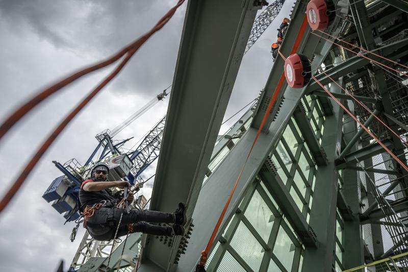 Dağcılarımız kendilerini cephelerden sarkıtarak çalıştıklarını dile getiren Doğu, "Hava şartları bunu birebir ilgilendiriyor. Bu özverili çalışmalarla beraber toplam panellerimizin hepsini bitirerek kısa sürede binamızı teslim etmek için aktif bir şekilde çalışmaktayız." dedi.