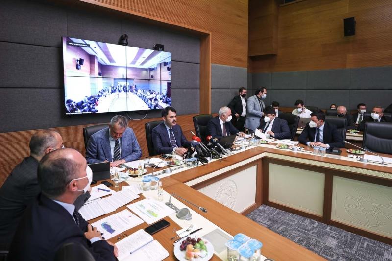 Toplantıda, Çevre ve Şehircilik Bakanı Murat Kurum, komisyon üyelerine sunum yaptı.