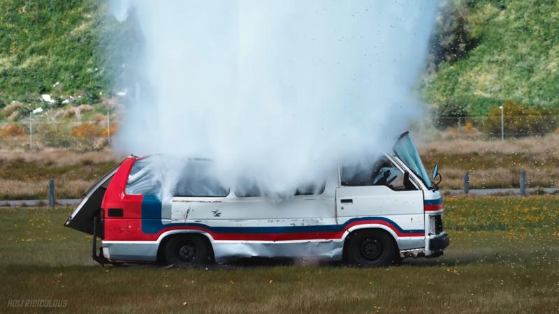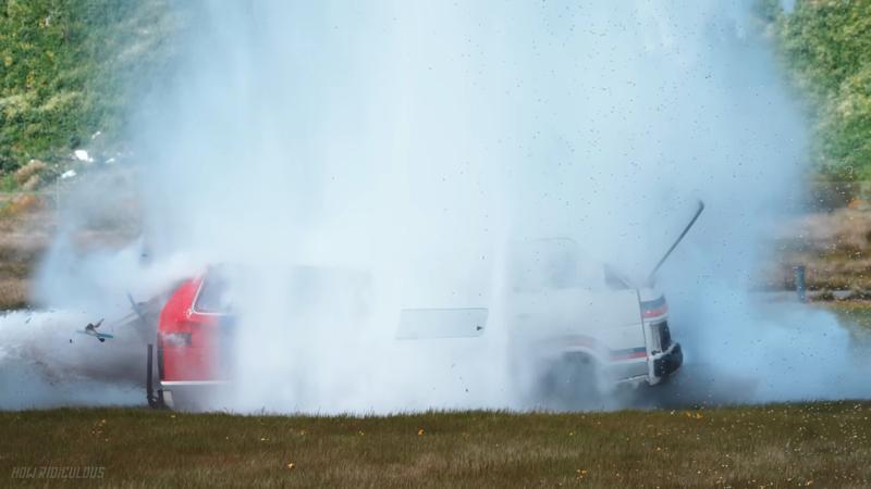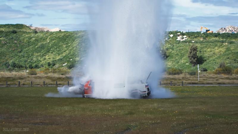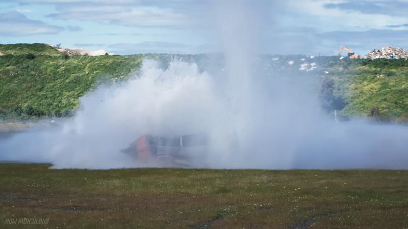 Suyun yere çarpmasıyla birlikte minivanın tavanı tamamen çöktü, camlar paramparça oldu ve araç kullanılamaz hale geldi. Görüntüler kısa sürede milyonlarca izlenmeye ulaşırken, birçok kullanıcı bu kadar masif bir su kütlesinin bile metal bir gövdeyi nasıl ezebildiğine inanamadı.