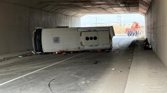 Alınan bilgiye göre, bir cam fabrikasında çalışan işçileri taşıyan Hasan Çekiç idaresindeki 20 S 0547 plakalı midibüs, Irlıganlı Mahallesi'nde yol kenarındaki çöp kutusu ve beton aydınlatma direğine çarpıp devrildi.