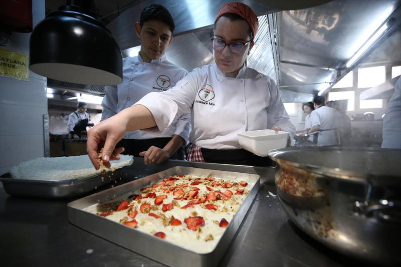 Emre Mümin, öğrencilere yüzlerce yıldır Türk sofralarında özellikle iftar menülerinin vazgeçilmez tatlılarından olan güllacın yapımını öğrettiklerini belirterek, güllacın biraz daha modernize edilmiş halini de yaptıklarını anlattı.