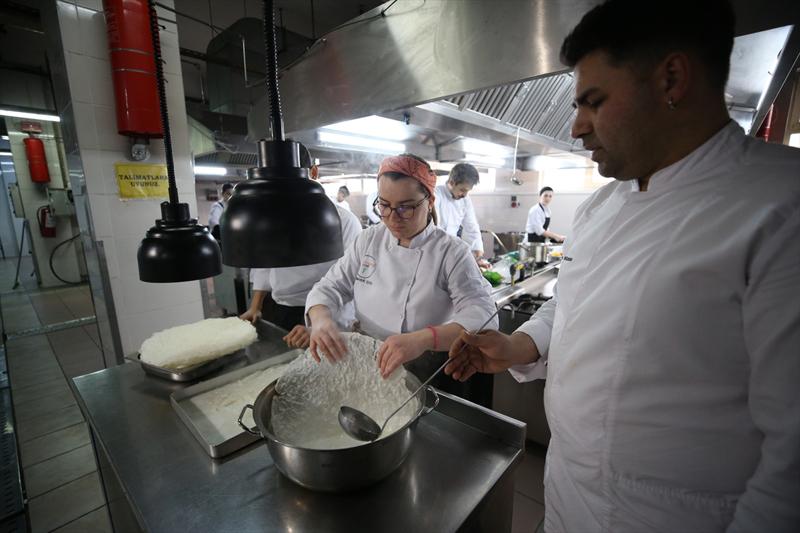 ÇOMÜ Turizm Fakültesi Gastronomi ve Mutfak Sanatları Bölümü Araştırma Görevlisi Emre Mümin, AA muhabirine, uygulama mutfağında bölüm içerisinde bulunan uygulama derslerini işlediklerini söyledi.