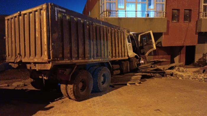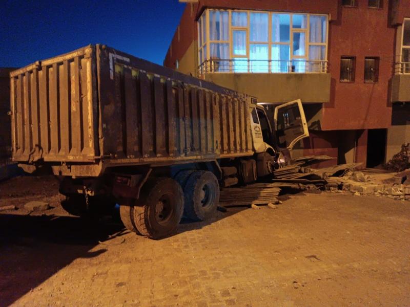 Kaza, akşam saatlerinde Derik ilçesi merkez Cevizpınar Mahallesi'nde meydana geldi. Mervan Y. (25) yönetimindeki plakası öğrenilmeyen hafriyat kamyonu, şoförünün direksiyon kontrolünü yitirmesi sonucu yol kenarındaki 2 katlı eve çarptı.