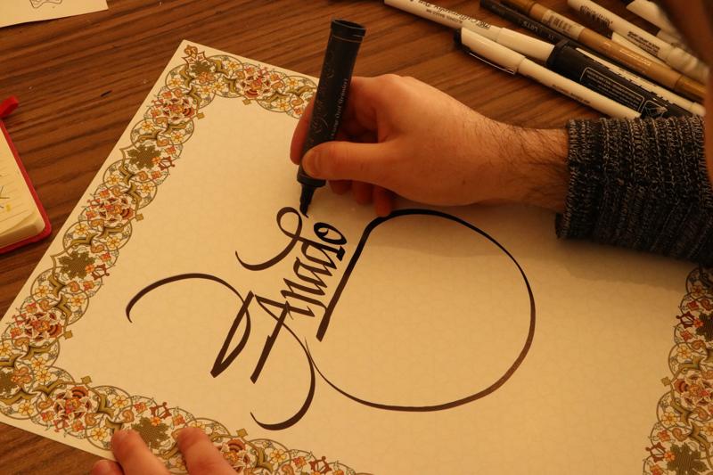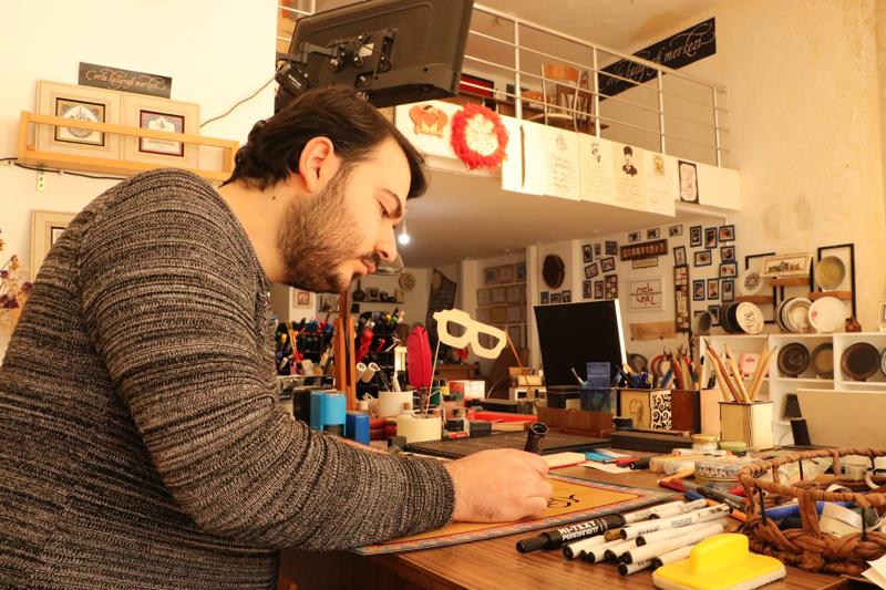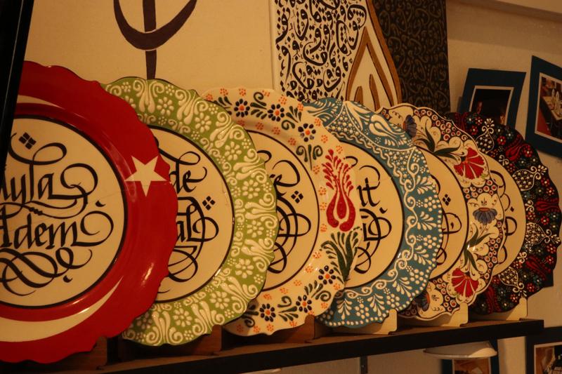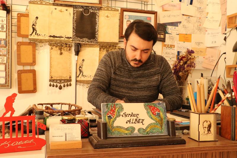 Albez, yazıların kaligrafi sanatıyla kuma, kazıma tekniğiyle cama, yakarak ahşaba işlenebildiğini belirtti.