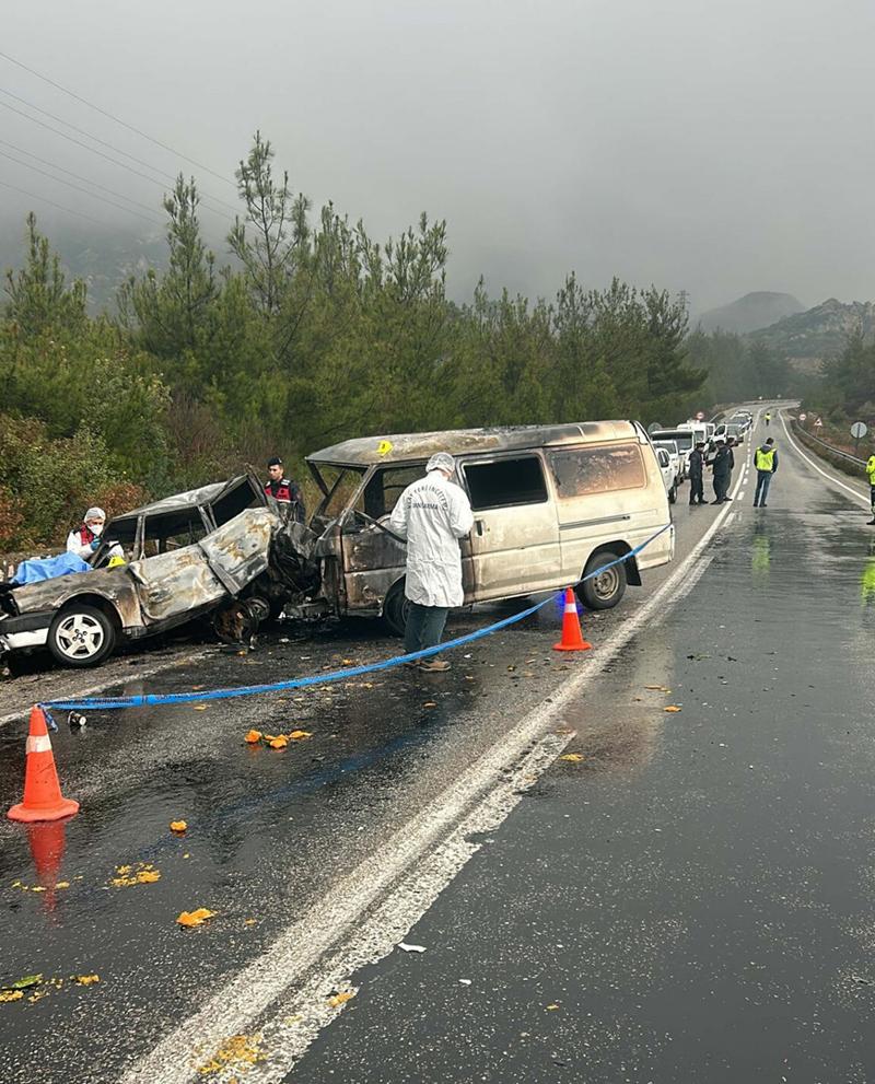 Minibüs ile çarpışan otomobil alev aldı! 1 ölü, 3 yaralı