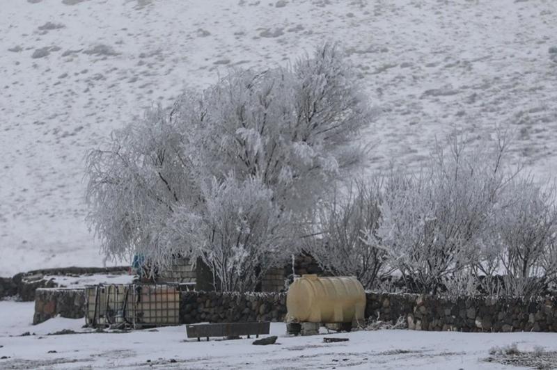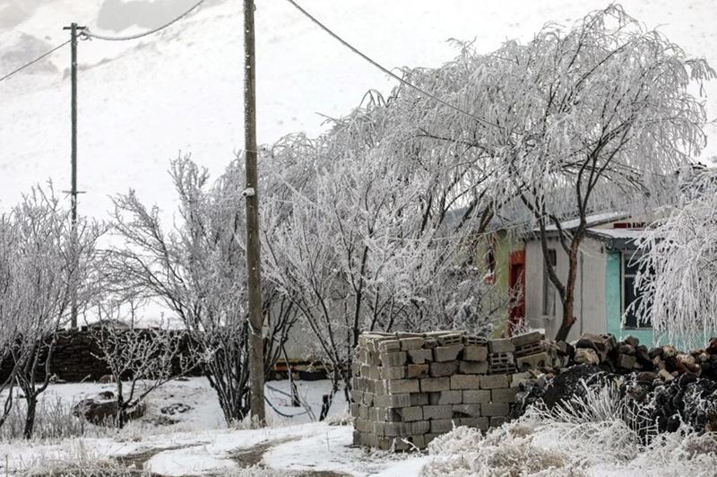 Gece sıcaklığın sıfırın altında 15 derece ölçüldüğü Ağrı'da da ağaç ve bitkiler kırağıyla kaplandı.