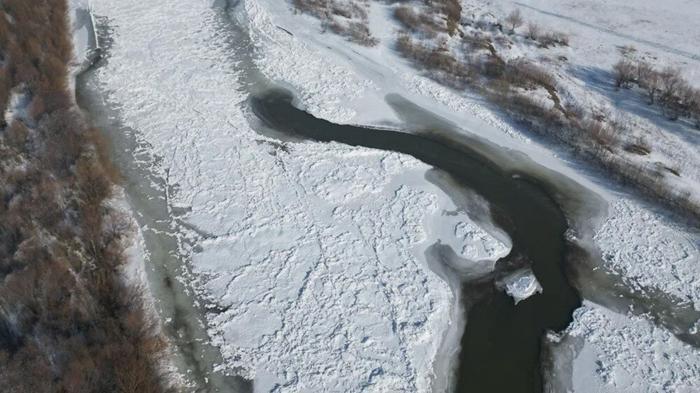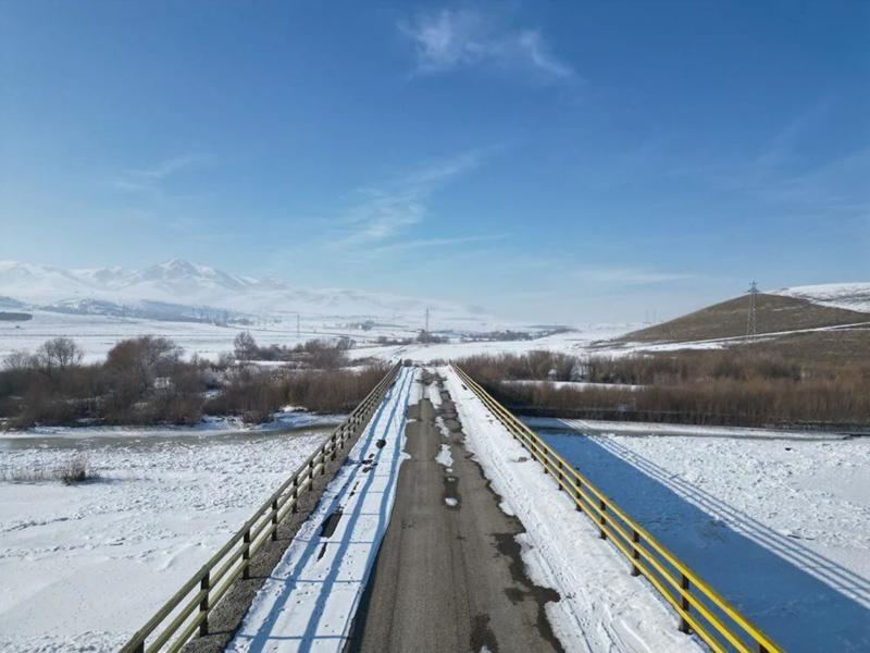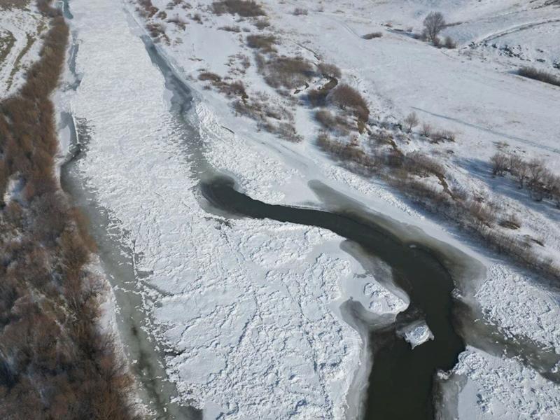Soğuklar nedeniyle buz tutan Murat Nehri, dronla görüntülendi.
