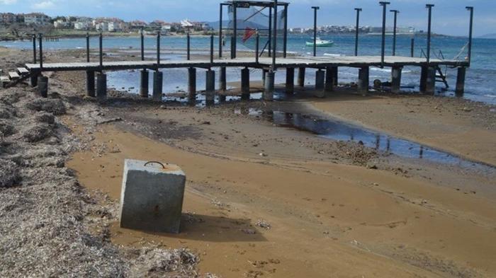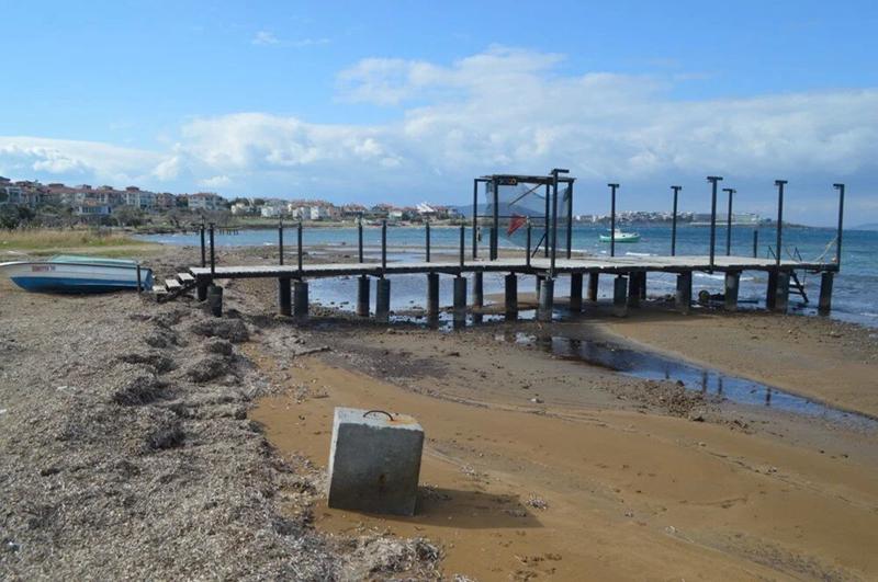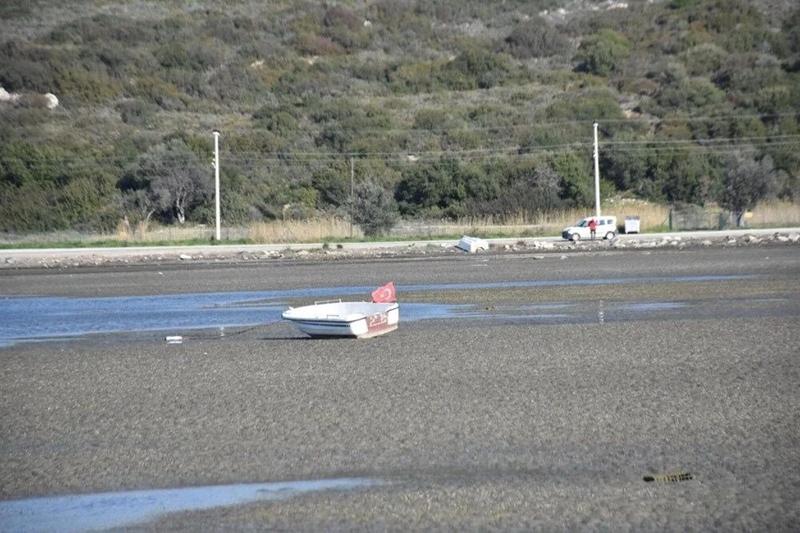 Burhaniye'nin İskele Mahallesi'nde de denizin çekilmesiyle sahilde küçük adacıklar oluştu.