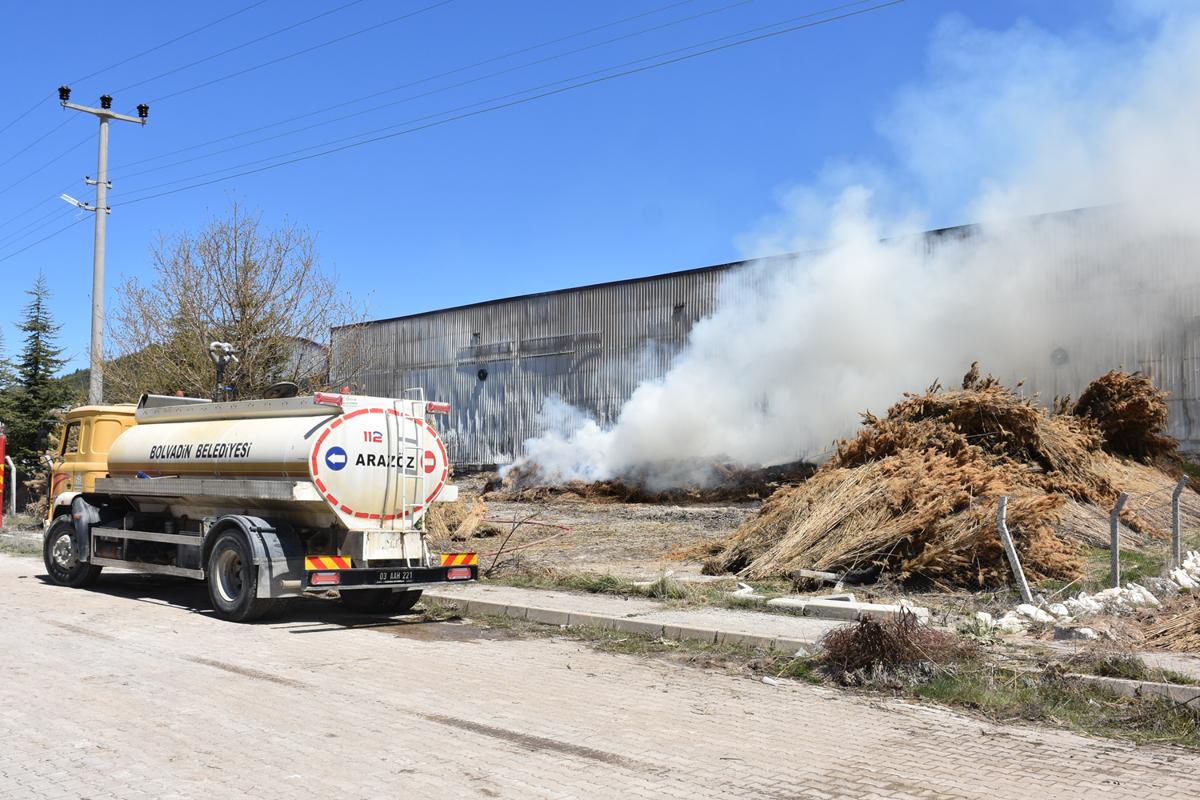 <meta name="description" content="Afyonkarahisar'ın Bolvadin ilçesinde kamış toplama merkezinin depo bölümünde çıkan yangın itfaiye ekiplerince kontrol altına alındı." />