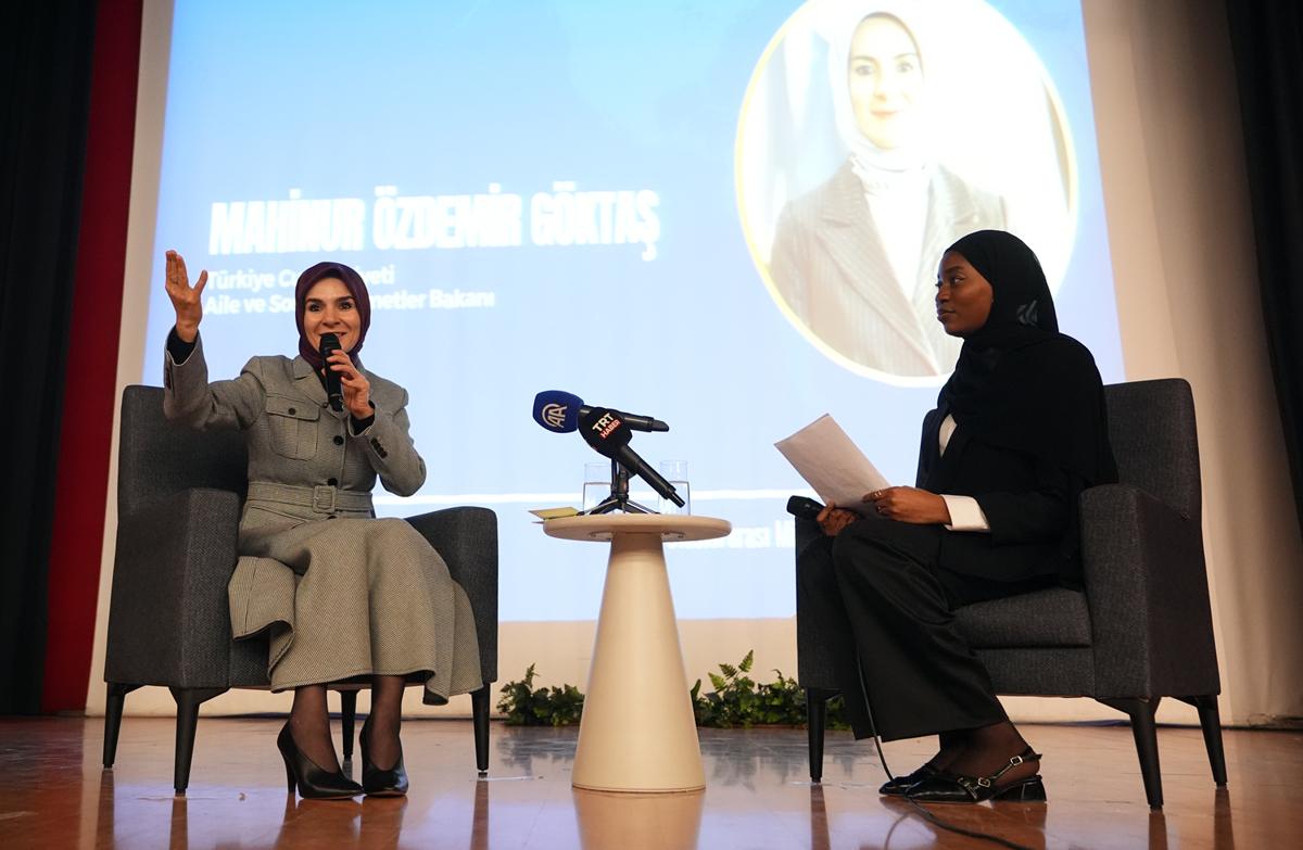 <meta name="description" content="Aile ve Sosyal Hizmetler Bakanı Mahinur Özdemir Göktaş, &quot;Sosyal medya, internet bize nasıl düşüneceğimizi dahi öğretmeye çalışıyor. Dünyaya bakış açısı sunmaya çalışıyor. Bizler de gençlerimizi çocuklarımızı oradaki olumsuz içeriklerden korumaya çalışıyoruz.&quot; dedi." />