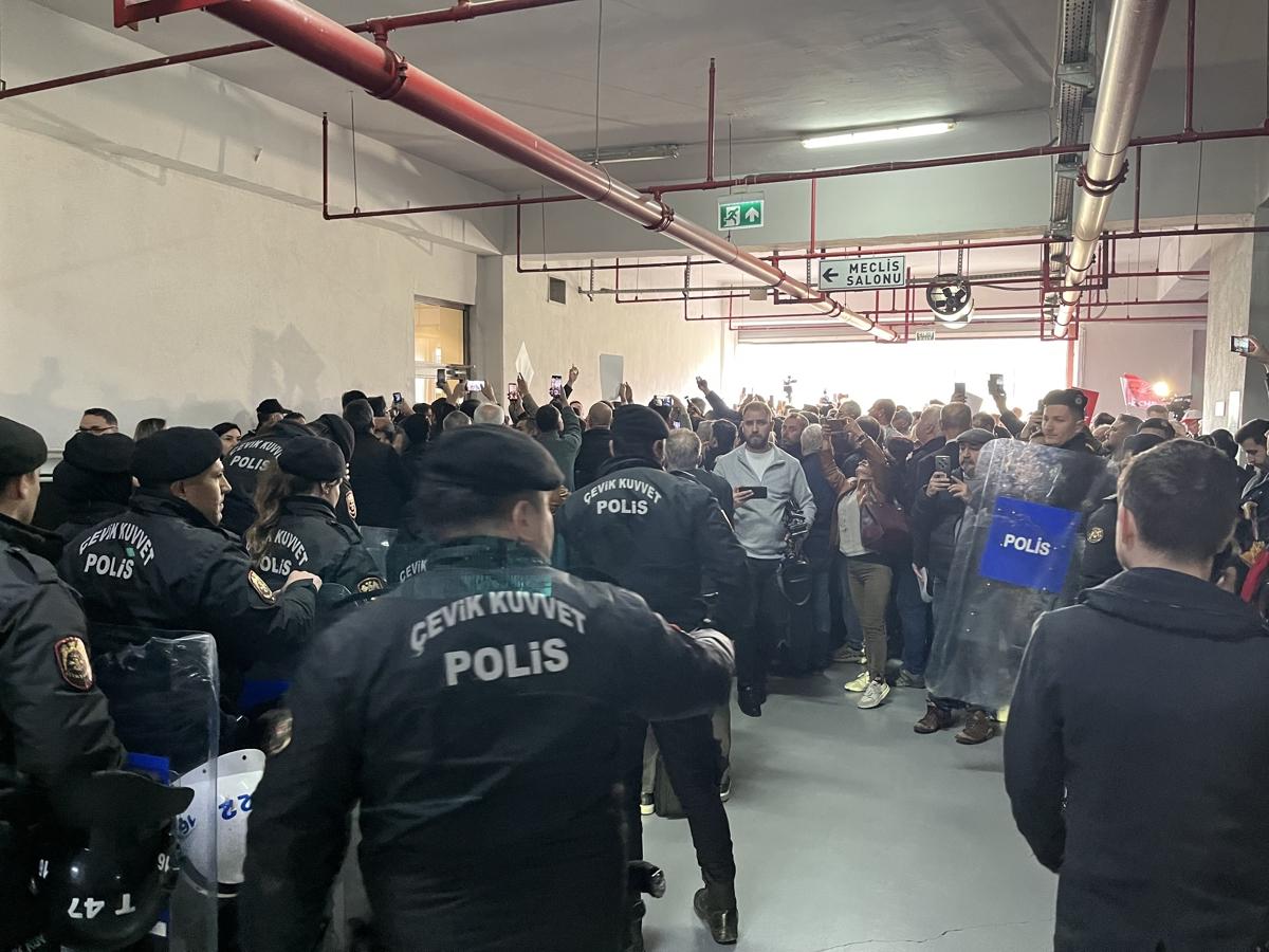 <meta name="description" content="Bursa Büyükşehir Belediyesi'nin CHP'li Başkanı Mustafa Bozbey'in tutuklanıp görevden alınmasını ardından başkanvekili seçimi öncesinde 200 kişilik CHP'li grup bariyerleri aşıp camları kırarak belediye binasına girdi. Öte yandan CHP'li meclis üyeleri, belediye başkanları ve milletvekilleri, Ankara Caddesi trafiğe kapattı." />