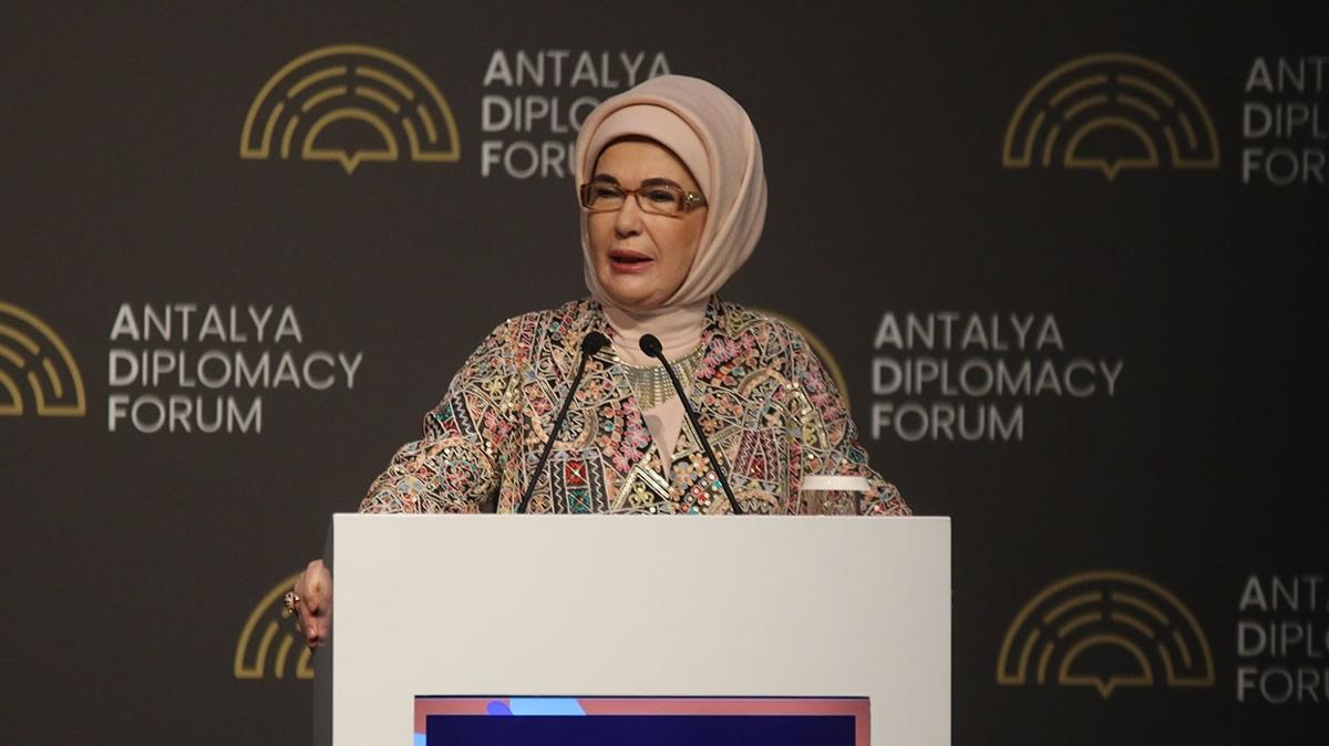 <meta name="description" content="Antalya Diplomasi Forumu'nda (ADF) vicdanların tercümanı olan Emine Erdoğan; Şanlıurfa ve Kahramanmaraş'taki okul saldırılarıyla sarsılan yüreklere sabır dilerken, küresel bir seferberlik ilan etti. Çocukları içine çeken şiddet sarmalına ve bu vahşeti sıradanlaştıran dijital mecralara karşı &quot;kararlılık&quot; mesajı veren Erdoğan, Filistin'deki &quot;eğitim kırımına&quot; karşı da dünyayı haysiyetli bir duruşa çağırdı." />