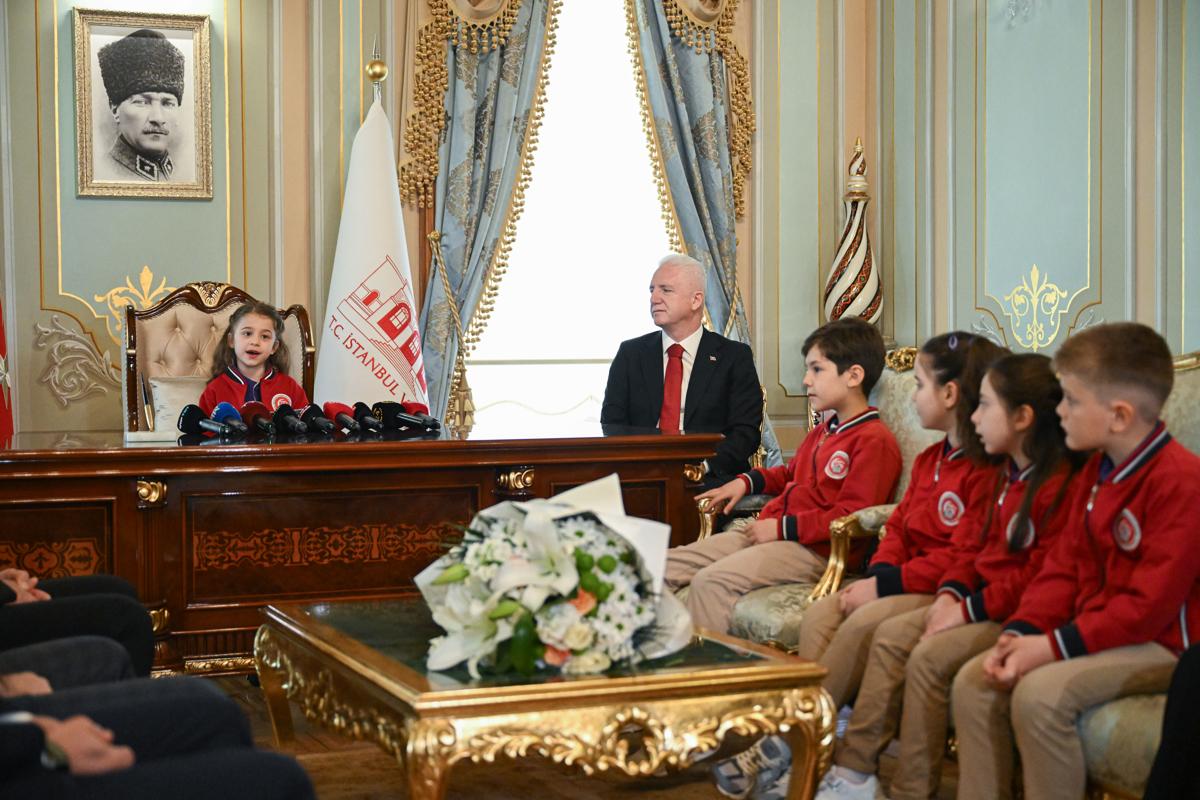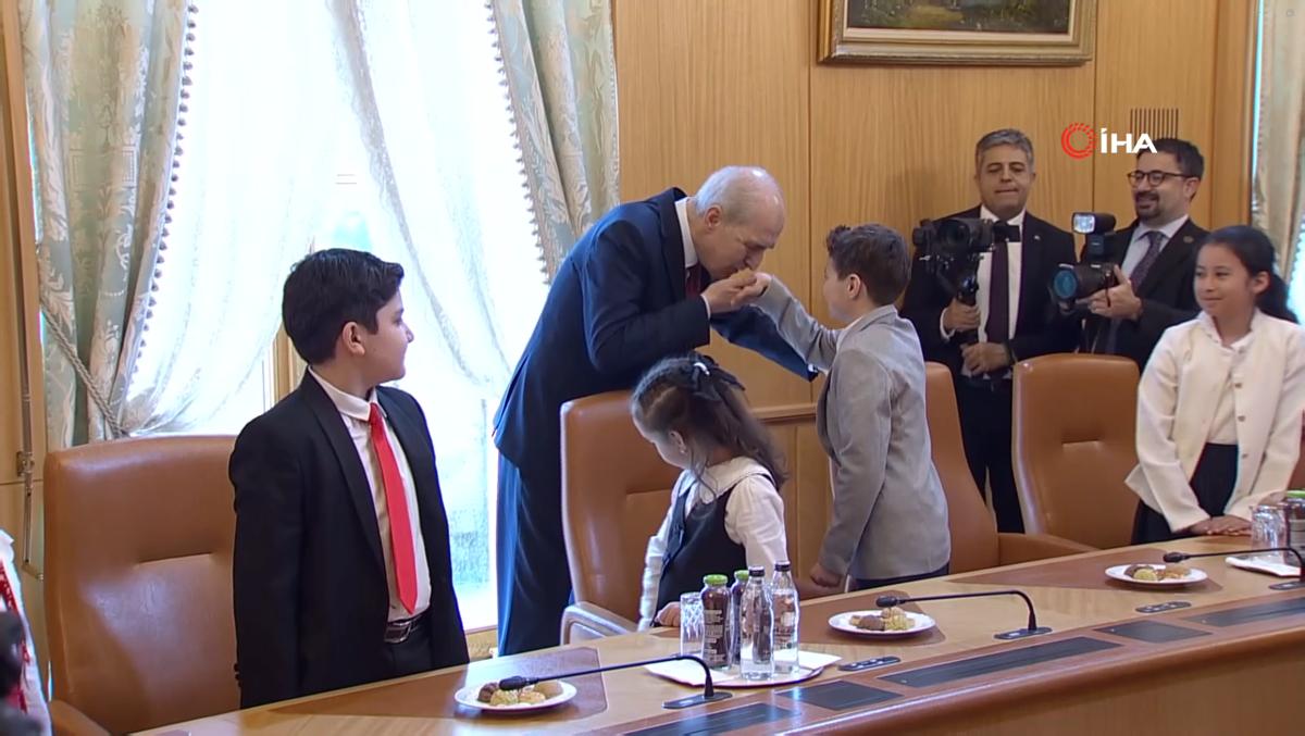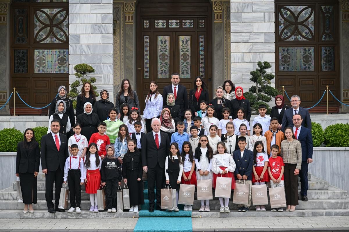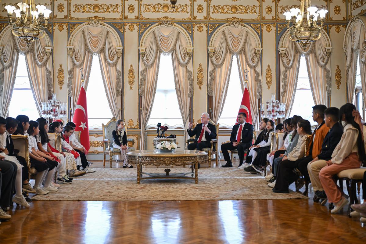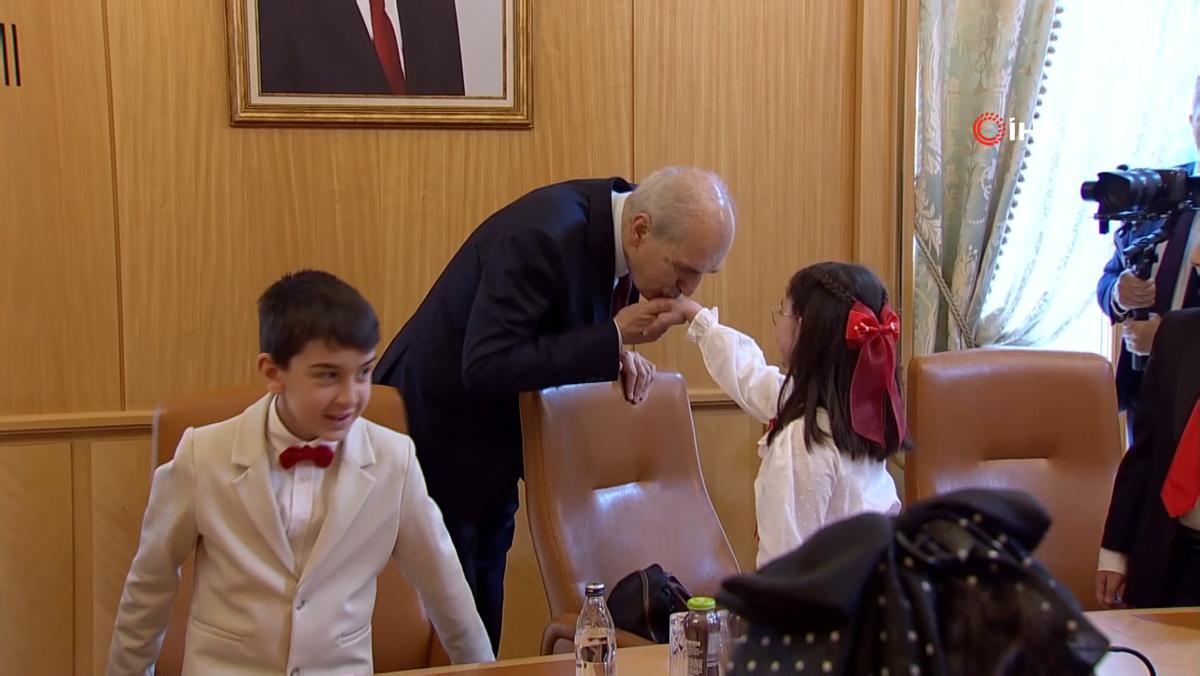<meta name="description" content="TBMM Başkanı Numan Kurtulmuş, 23 Nisan dolayısıyla Milli Eğitim Bakanı Yusuf Tekin ve beraberindeki öğrencileri TBMM Başkanlık Divan Salonu'nda kabul etti. Kurtulmuş, bayram geleneği kapsamında koltuğunu Semiha İsen Ortaokulu 6. Sınıf öğrencisi İnci Yıldız Şentürk'e bıraktı. Milli Eğitim Bakanı Tekin, koltuğunu 5. sınıf öğrencisi Defne Bayraktaroğlu'na devrederken, İstanbul Valisi Davut Gül ise düzenlenen programda koltuğunu Bahçelievler 15 Temmuz Şehitleri İlkokulu öğrencisi Asmin Ayşe Aslan'a devretti." />
