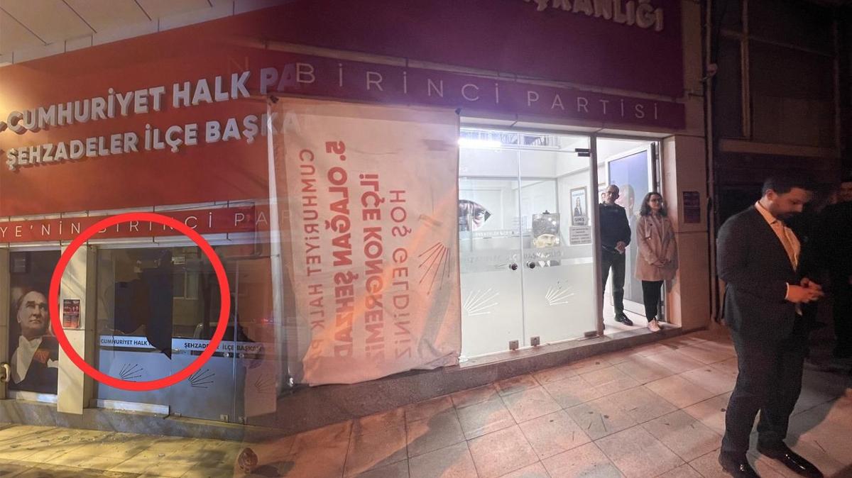 <meta name="description" content="Manisa'nın Şehzadeler ilçesinde, belediyede işe alınma vaadinin gerçekleşmediğini iddia eden 35 yaşındaki Y.T., CHP İlçe Başkanlığı binasına taşla saldırdı. Camları kıran saldırgan, olaydan kısa süre sonra emniyete giderek teslim oldu." />