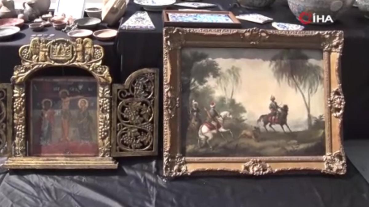 <meta name="description" content="İstanbul'da tarihi eser kaçakçılarına yönelik düzenlenen operasyonlarda, Osmanlı Cihan Devleti'nin en önemli hattatlarından ve Sultan Abdülmecid'in hocası olarak bilinen Yesarizade Kazasker Mustafa İzzet Efendi'nin yaptığı tablonun da aralarında yer aldığı 374 eser ve obje ele geçirildi. İstanbul'un farklı noktalarında bulunan tarihi çeşmelerden çalınan muslukların da ele geçirildiği baskınlarda 12 şüpheli yakalandı." />