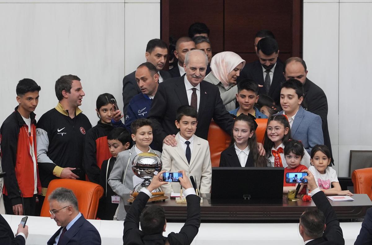 <meta name="description" content="TBMM'nin 106. kuruluş yıl dönümü dolayısıyla düzenlenen çocuk özel oturumuna, hem 23 Nisan coşkusu hem de okul saldırılarında kaybedilen canların hüznü damga vurdu. Meclis Başkanı Numan Kurtulmuş'un okul şiddetine karşı &quot;Meclis Araştırma Komisyonu&quot; çağrısı yaptığı tarihi oturumda, koltukları devralan çocuklar birlik ve dayanışma mesajı vererek hayatını kaybeden arkadaşları ve öğretmenlerini dualarla andı." />