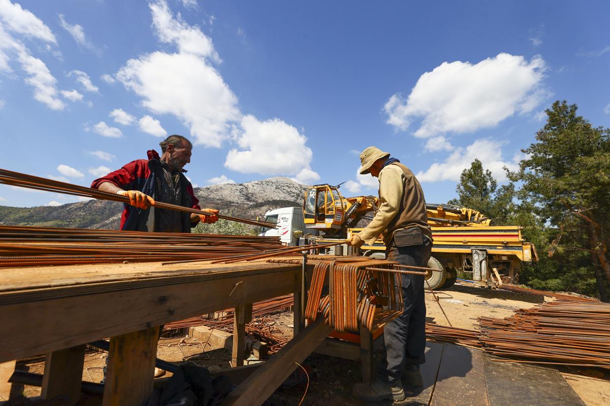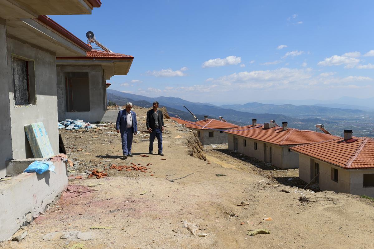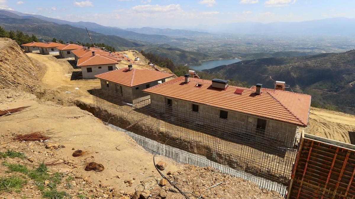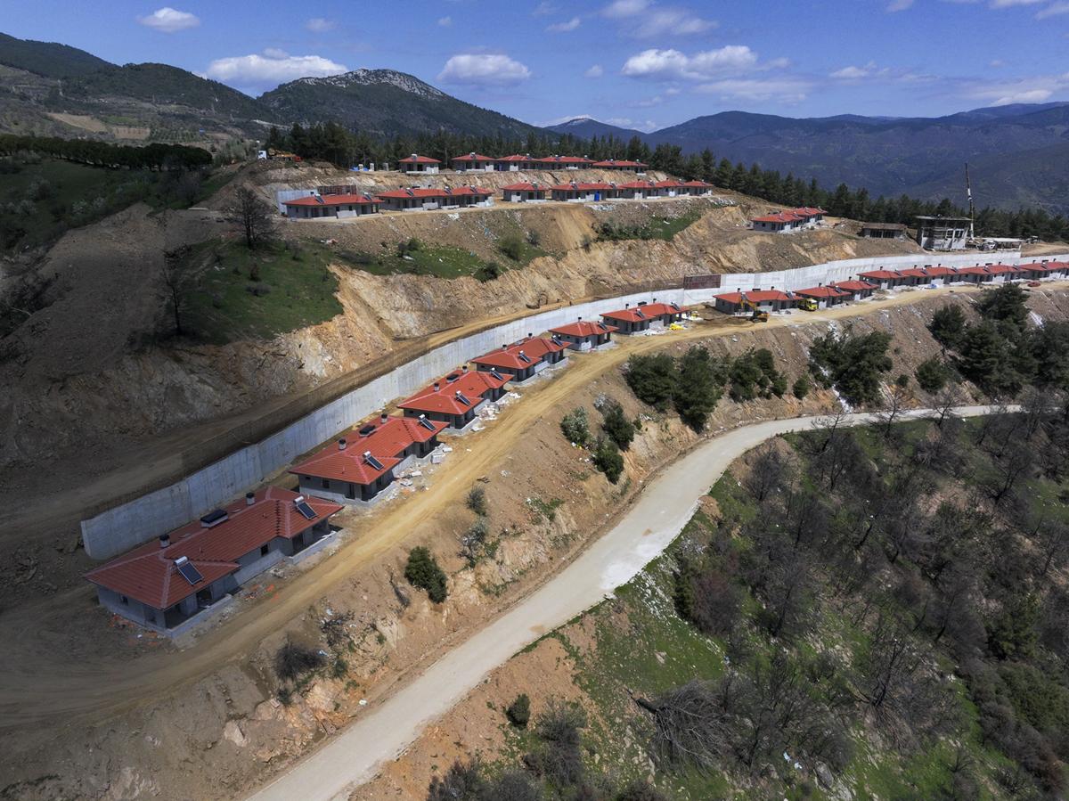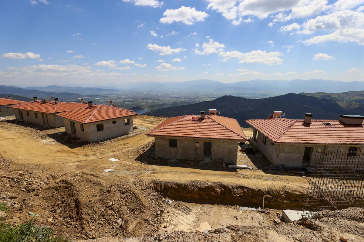 <meta name="description" content="İzmir'de alevlerin yuttuğu mahallelerde yaralar bir yıl dolmadan sarıldı. Çevre, Şehircilik ve İklim Değişikliği Bakanlığı koordinasyonunda yürütülen hummalı çalışma meyvelerini verdi. Kaba inşaatı tamamlanan 138 köy evi, ahır ve cami projelerinde sona gelindi. Evlerin haziran ayında hak sahiplerine teslim edileceği öğrenildi. &quot;Allah razı olsun evlerimizi yaptılar, fidan dağıttılar, acımızı dindirmeye çalıştılar&quot; diyen mahalle sakinleri, küllerinden doğan yeni yuvalarına kavuşmak için gün sayıyor. " />