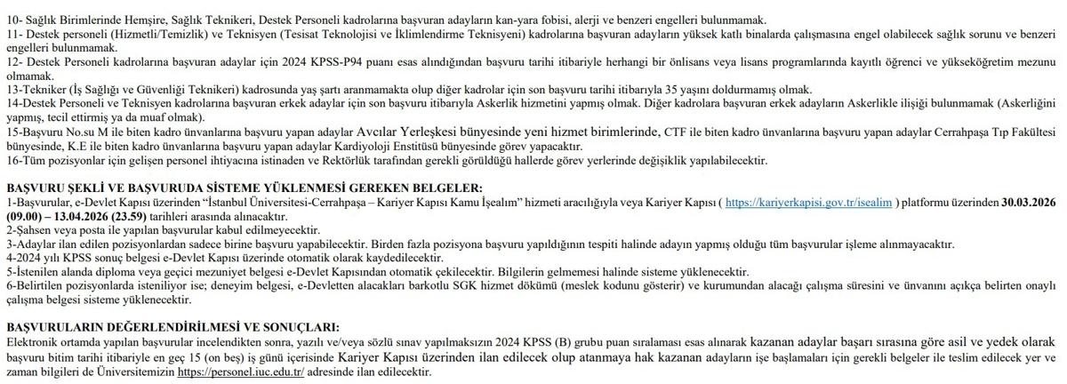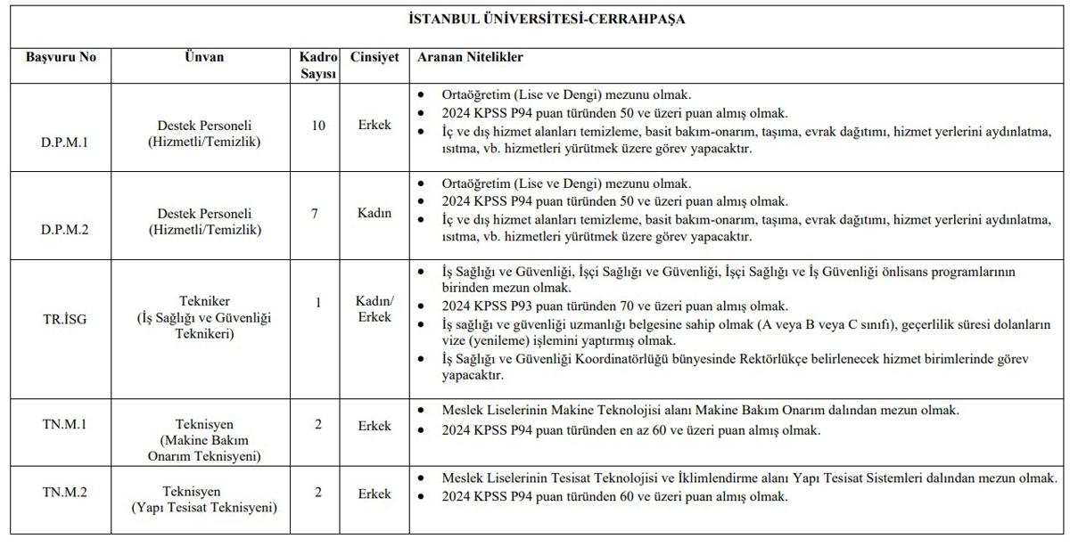 <meta name="description" content="Personel alımı ilanları, kamu kurumlarında çalışmayı hedefleyen pek çok kişinin gündeminde. Özellikle düşük KPSS puanı ile başvuru yapılabilen ilanlar yoğun ilgi görüyor. Bunun yanı sıra, İstanbul Üniversitesi Cerrahpaşa Rektörlüğü de personel alımı yapılacağını duyurdu. Üstelik en az 50 KPSS puanı isteniyor. Detaylar haberimizde..." />