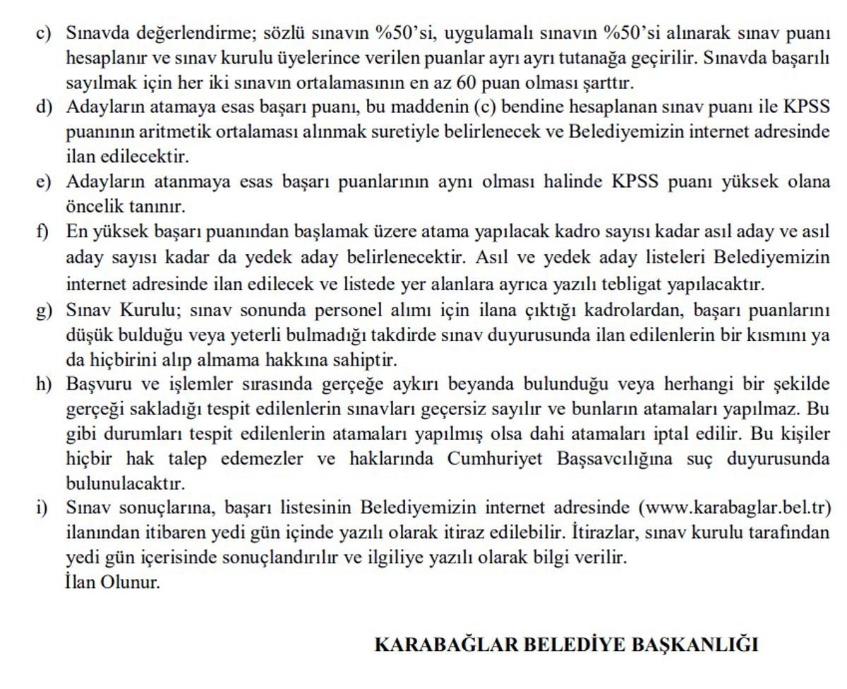 <meta name="description" content="Memur alımı ilanları, Türkiye'de kamu kurumlarında çalışmayı düşünen pek çok vatandaşın gündeminde. Bu doğrultuda belediyeler, hastaneler, üniversiteler ve çeşitli kamu kurumları zaman zaman KPSS puanı ile bazı şartlara bağlı olarak gerçekleşecek memur ve personel alımı ilanlarını duyuruyor. Bunun yanı sıra, Karabağlar Belediye Başkanlığı da en az 65 KPSS puanıyla memur alımı yapılacağını açıkladı. Detaylar haberimizde..." />