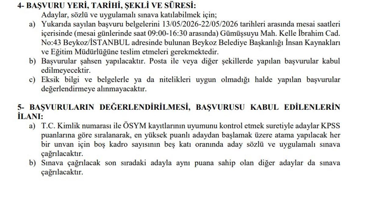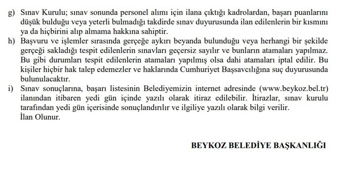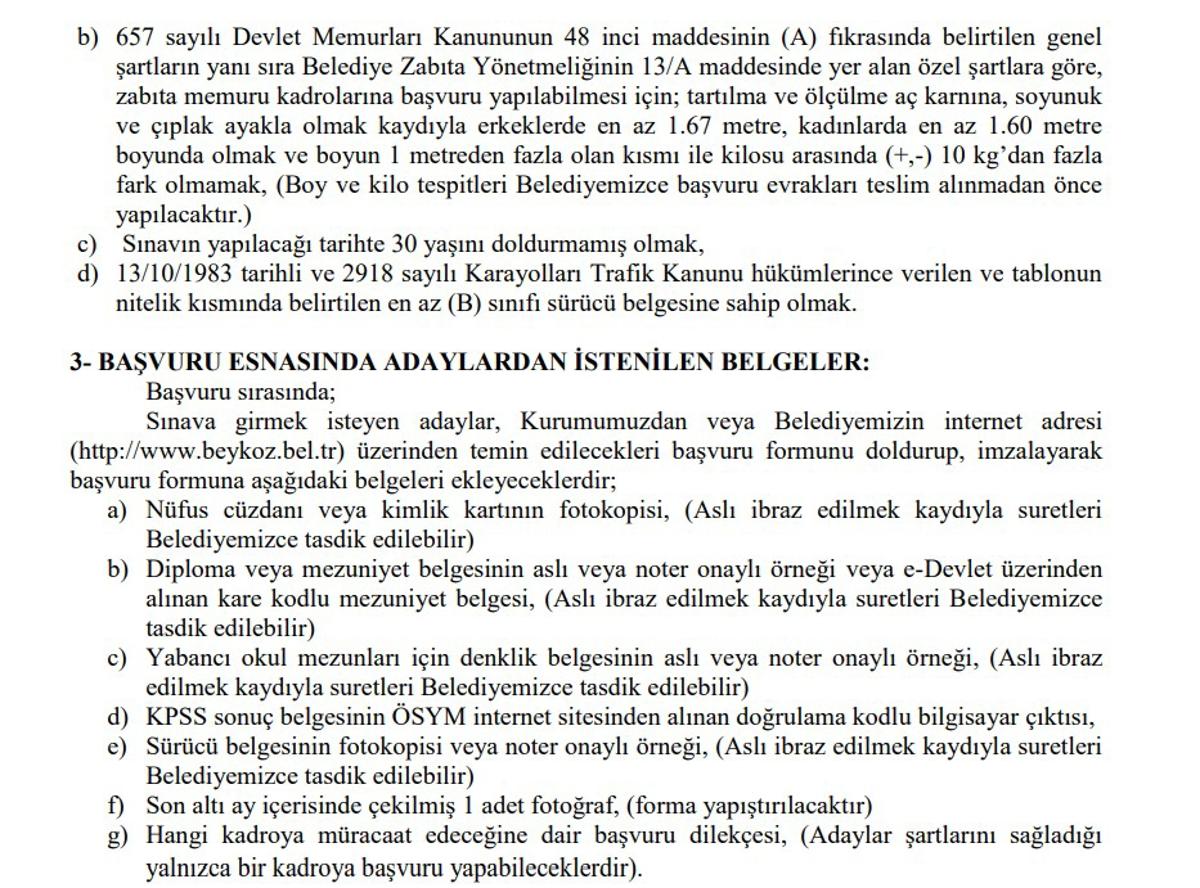 <meta name="description" content="Memur alımı ilanları, kamu kurumlarında çalışmayı hedefleyen pek çok kişinin gündeminde. Özellikle düşük KPSS puanı ile başvuru yapılabilen ilanlar yoğun ilgi görüyor. Bunun yanı sıra, İstanbul ili Beykoz Belediye Başkanlığı da memur alımı yapılacağını duyurdu. Üstelik en az 65 KPSS puanı isteniyor. Detaylar haberimizde..." />