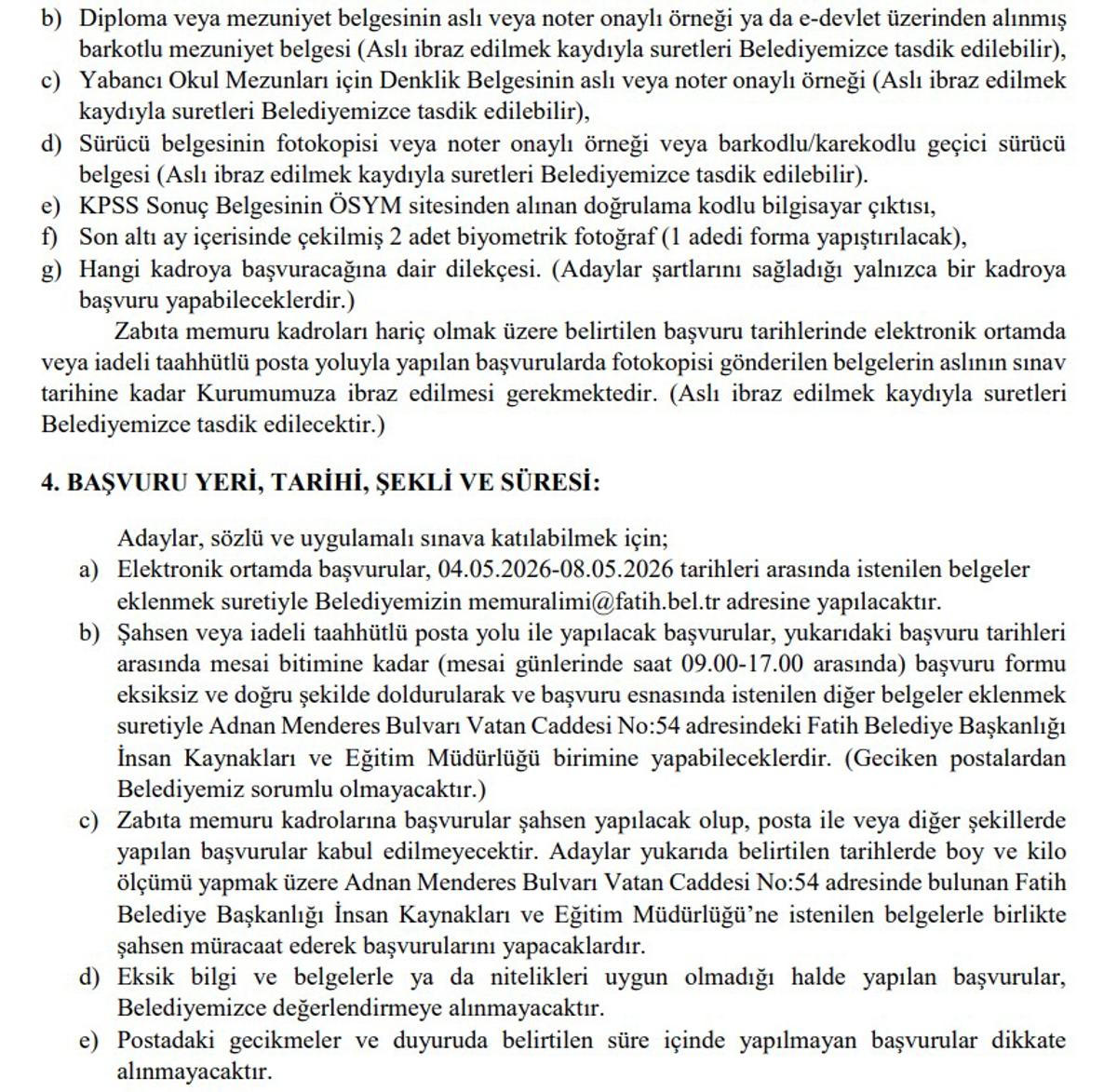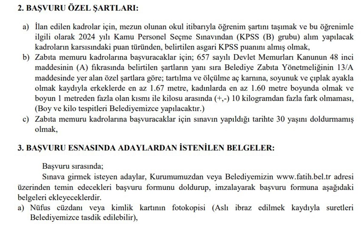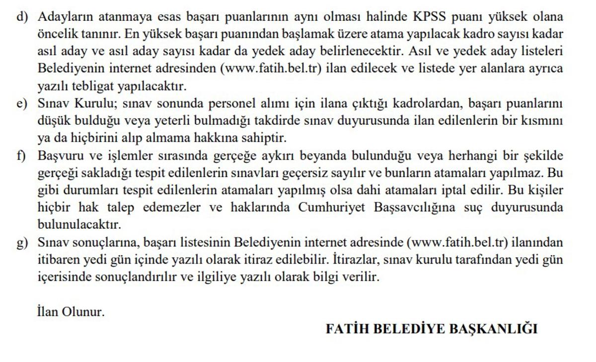 <meta name="description" content="Memur alımı ilanları, Türkiye'deki binlerce vatandaşın gündeminde. Özellikle özel sektörde çalışmak istemeyen ve yeni mezun olan pek çok kişi, kamu kurumlarında çalışmayı hedefliyor. Bu doğrultuda KPSS'ye giriyor ve puanına uygun, tercih ettiği ilanlara başvuru yapıyor. Bunun yanı sıra, İstanbul ili Fatih Belediye Başkanlığı da memur alımı yapılacağını duyurdu. İşte istenen KPSS puanı ve detaylar..." />