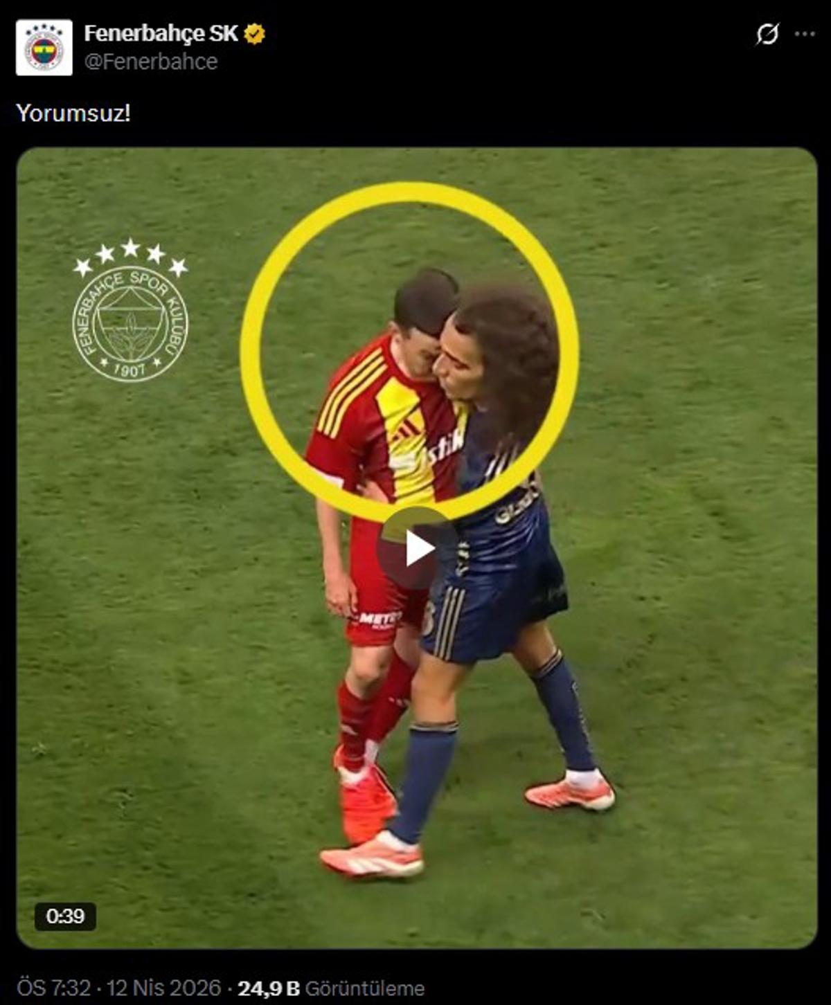 <meta property="og:description" content="S&#252;per Lig'de Fenerbah&#231;e, 29. haftada oynanan Kayserispor kar&#351;&#305;la&#351;mas&#305;n&#305;n ard&#305;ndan sosyal medya hesab&#305;ndan bir payla&#351;&#305;m yapt&#305;. Sar&#305; lacivertliler, ma&#231;taki hakem kararlar&#305;na tepki g&#246;sterdi." />