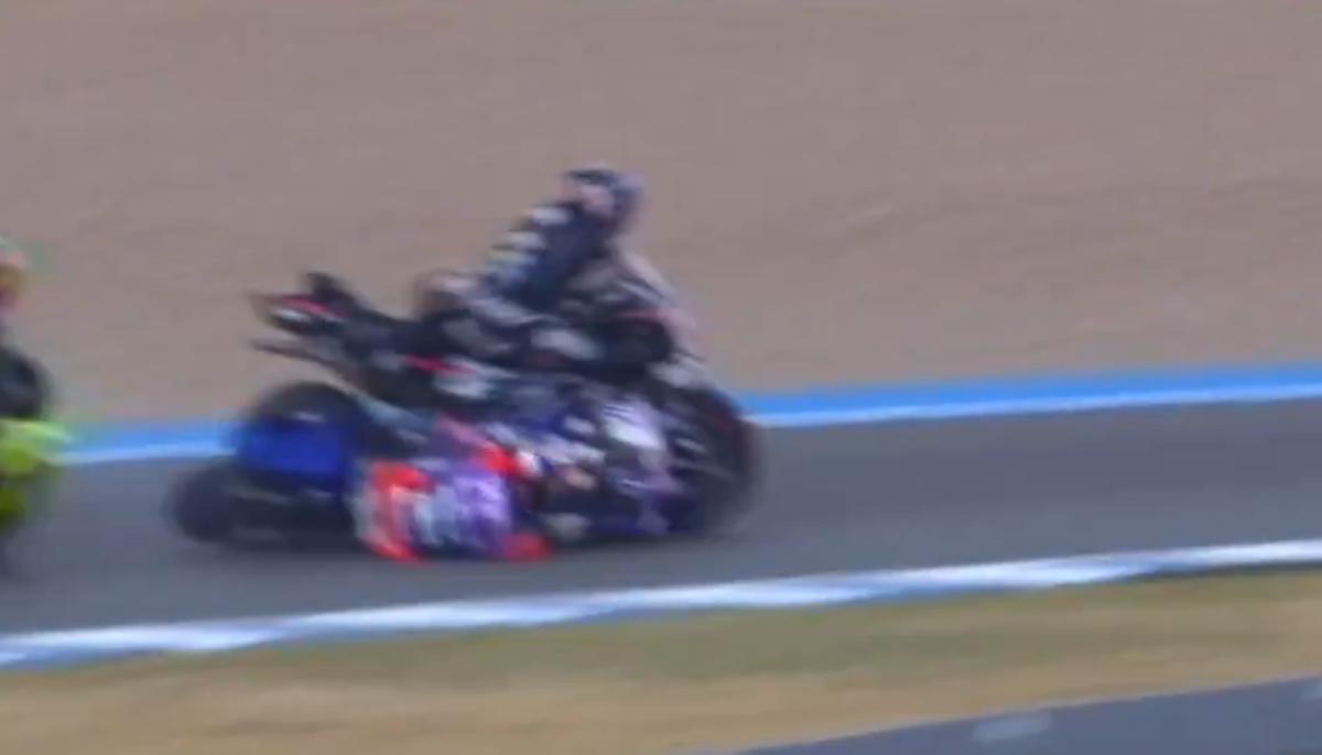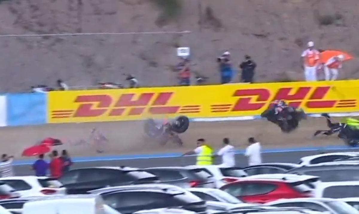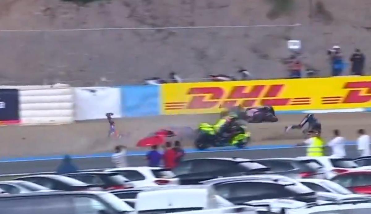 <meta name="description" content="MotoGP Dünya Şampiyonası'nın 4. etabı olan İspanya Grand Prix sprint yarışında Toprak Razgatlıoğlu, korkutan bir kaza yaşadı. Motordan düşen milli sporcu, bir süre yerde sürüklendi." />