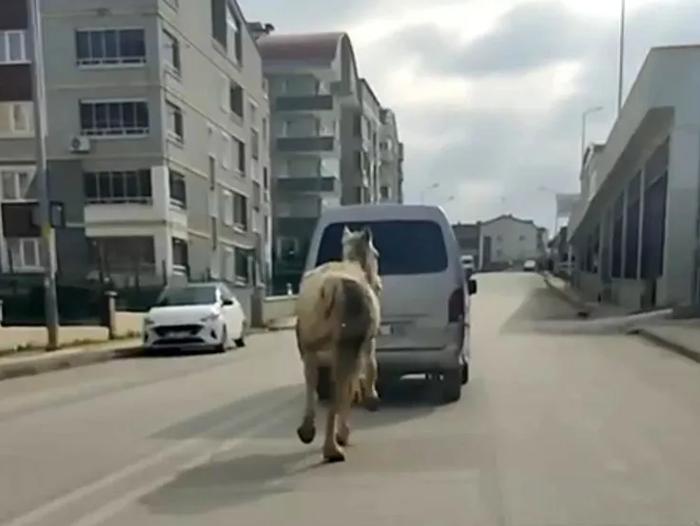 <meta name="title" content="Bursa'da akılalmaz olay! Aracın arkasına atı bağlayıp böyle koşturdu"/>