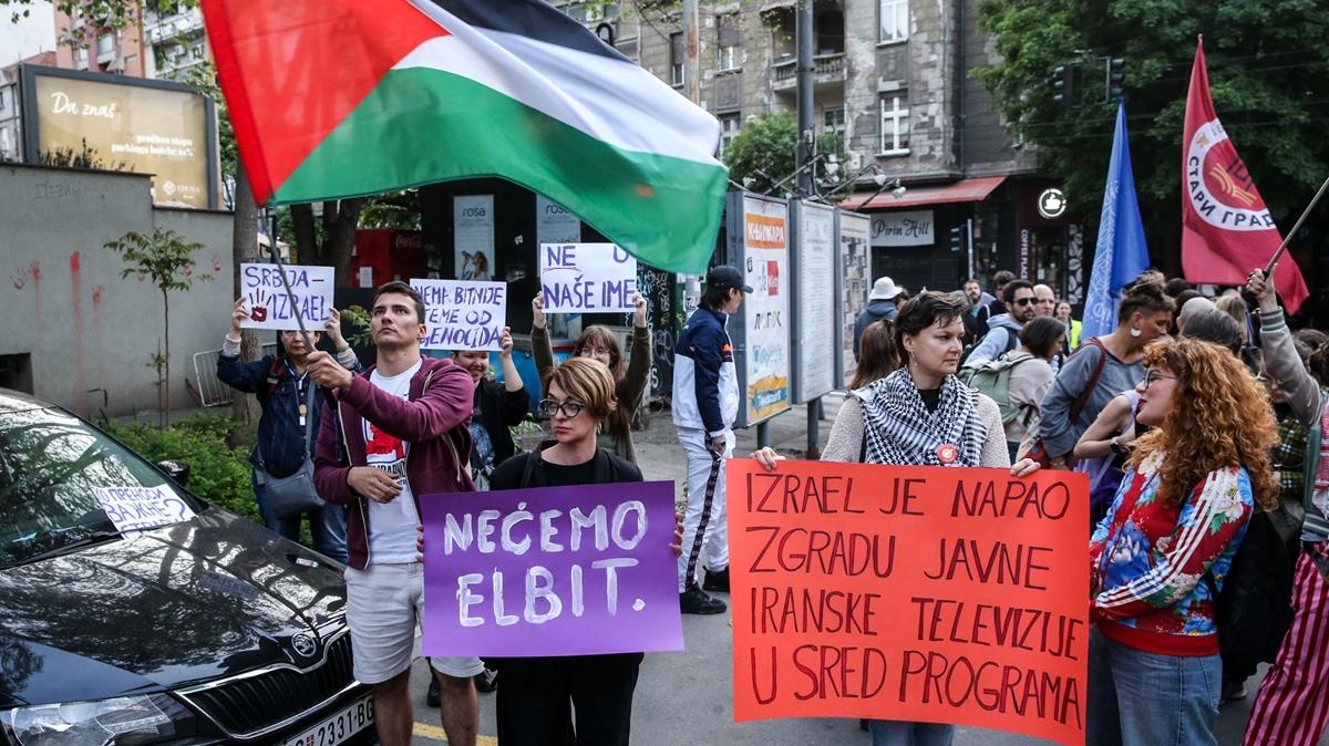 <meta name="description" content="Sırbistan'ın başkenti Belgrad'da düzenlenen gösteride, İsrail'in Eurovision Şarkı Yarışması'na katılımı nedeniyle yarışmanın boykot edilmesi istendi. Sırbistan bu yıl da yarışmada mücadele edecek." />